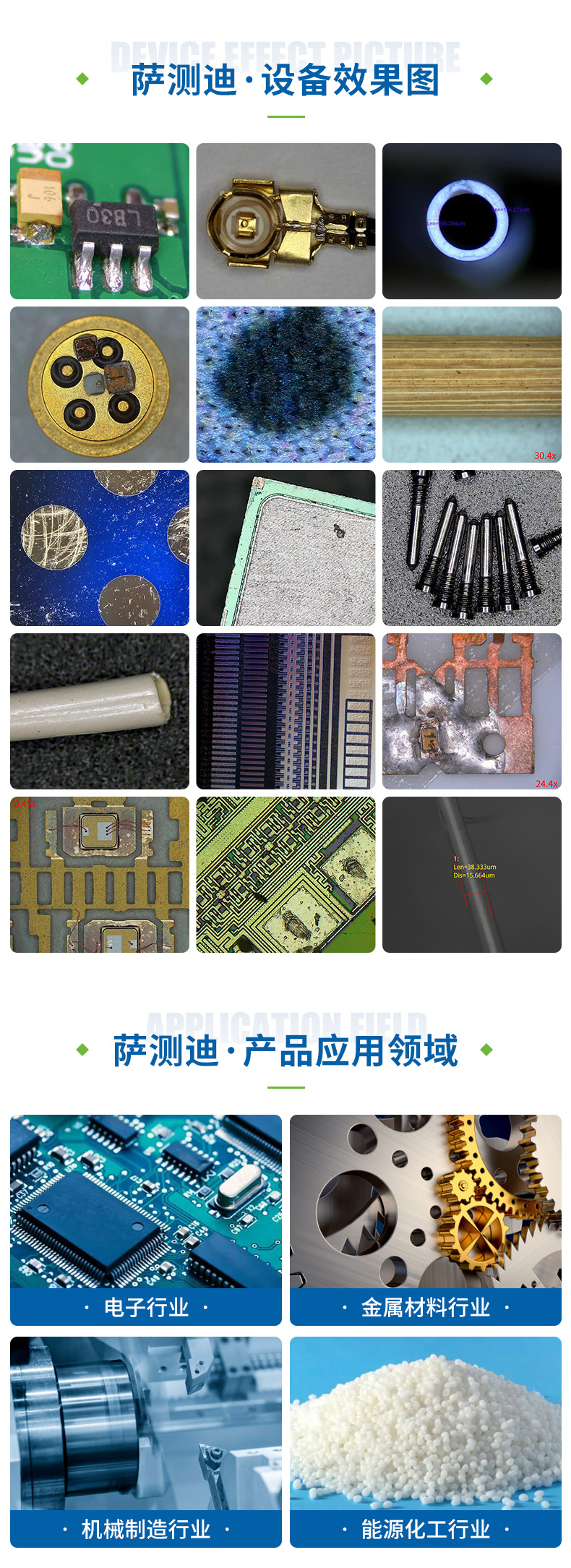 苏州萨测迪精密仪器有限公司主要致力光学产品的开发、制造和营销,主要经营项目有:金相显微镜,视频显微镜,半导体检查/工具显微镜,金相切割机,金相磨抛机,金相镶嵌机等金相制样设备,以及实验室用硬度计,光谱仪,影像测量设备,二次元手动/自动测量仪等